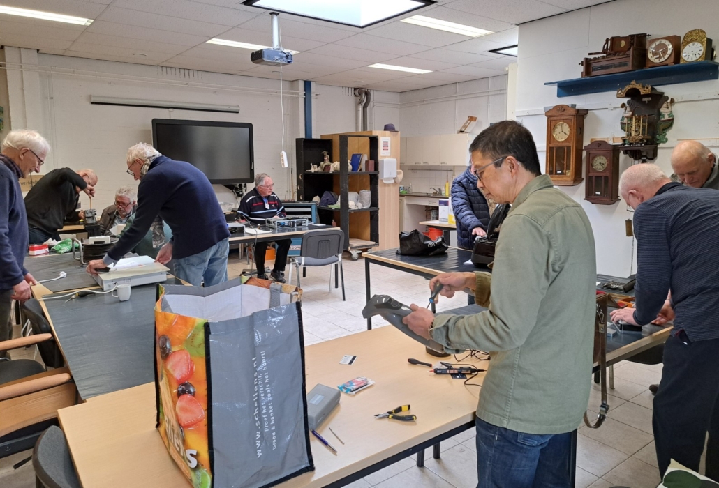 Gaat het klusje om iets dat je mee kunt nemen naar het HOi-Huis, dan ben je natuurlijk ook van harte welkom bij het Repaircafé. Dit is elke laatste vrijdag van de maand open van 13.00 tot 17.00 uur; aanbieden van reparaties is tot uiterlijk 16.00 uur mogelijk. Je kunt binnenlopen maar als je vooraf intekent via de beheerder op een reparatielijst krijg je voorrang op degenen die zich niet vooraf hebben aangemeld. Reparaties zijn gratis maar reserveonderdelen moeten zelf worden aangeschaft.